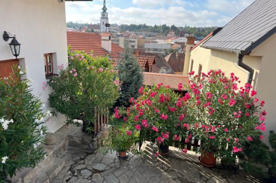 - při pěkném počasí snídaně na terasách hotelu s výhledem na město Třebíč Vychutnejte si snídani na terase ZDE