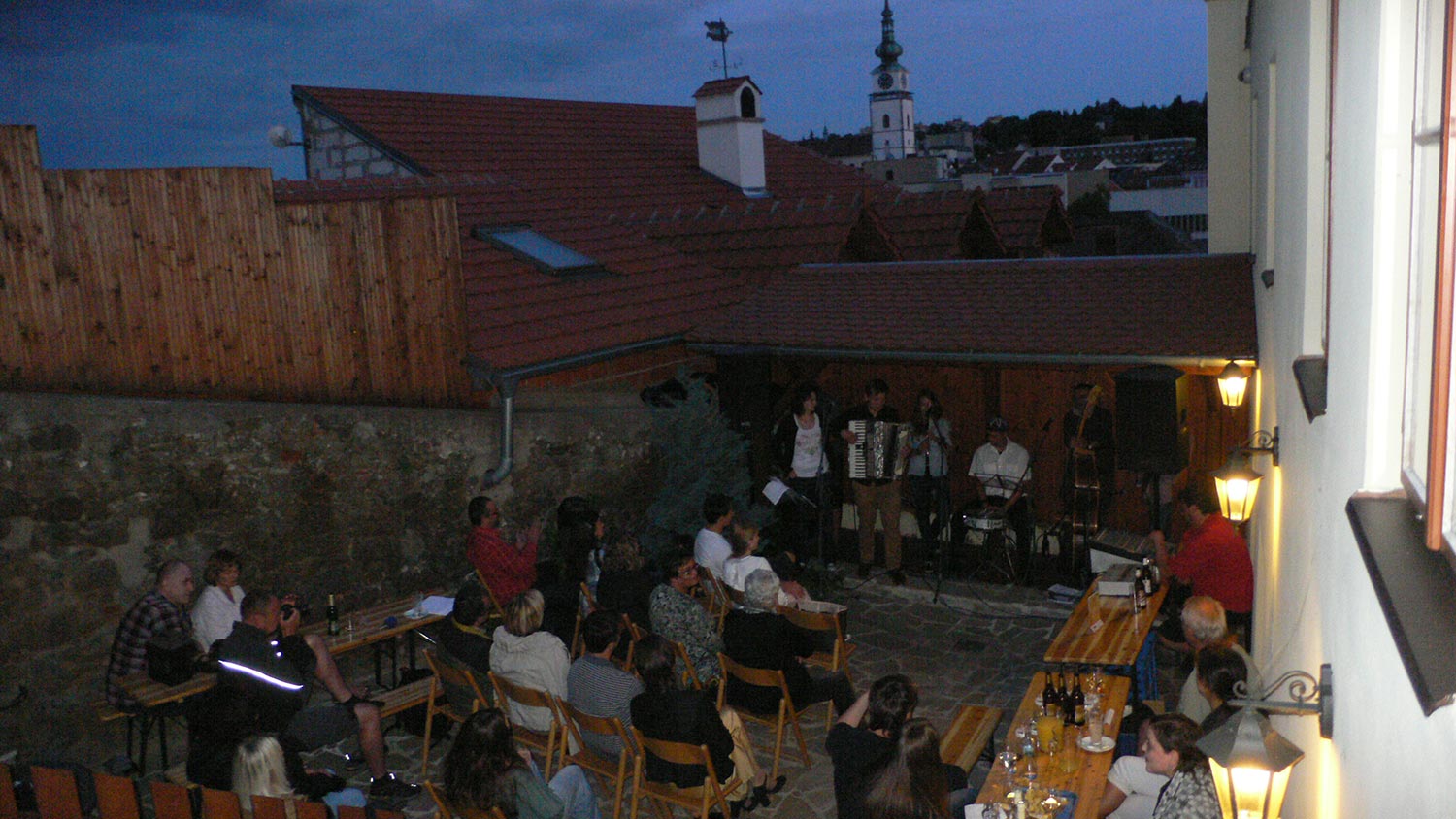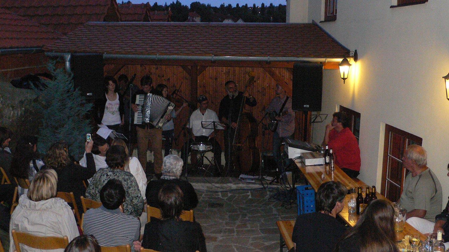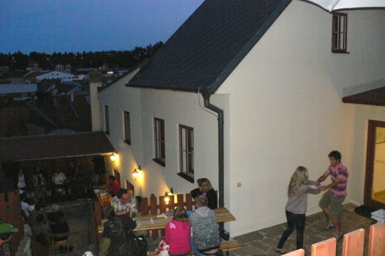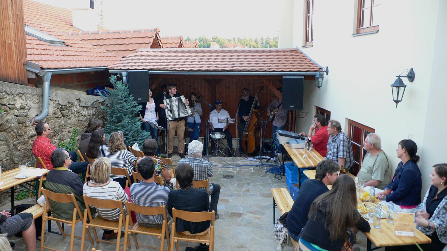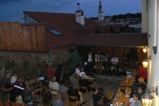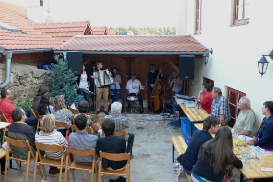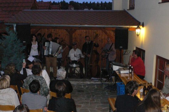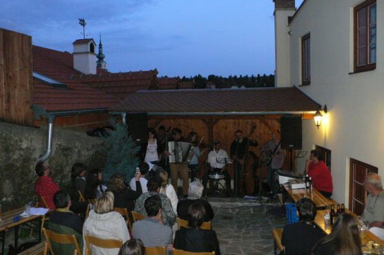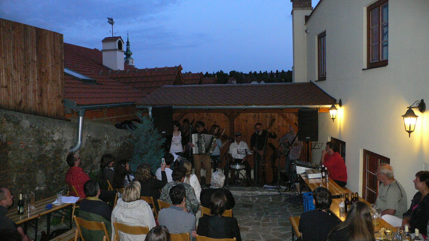 Na tři dny ožila Zadní synagoga a židovská čtvrť v Třebíči řemeslnými stánky, hudbou a tancem v židovských uličkách. V pátek dne 12.7.2013 od 20:00 hod. v rámci programu Oživeného židovského města opět připravilo městské kulturní středisko Třebíč na terasách našeho hotelu koncert klezmerové skupiny „Mackie Messer Klezmer Band“. Neopakovatelnou večerní atmosféru koncertu Vám přiblíží několik fotografií.