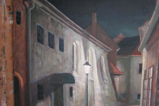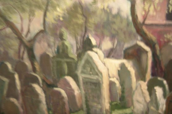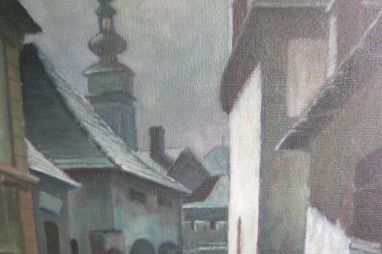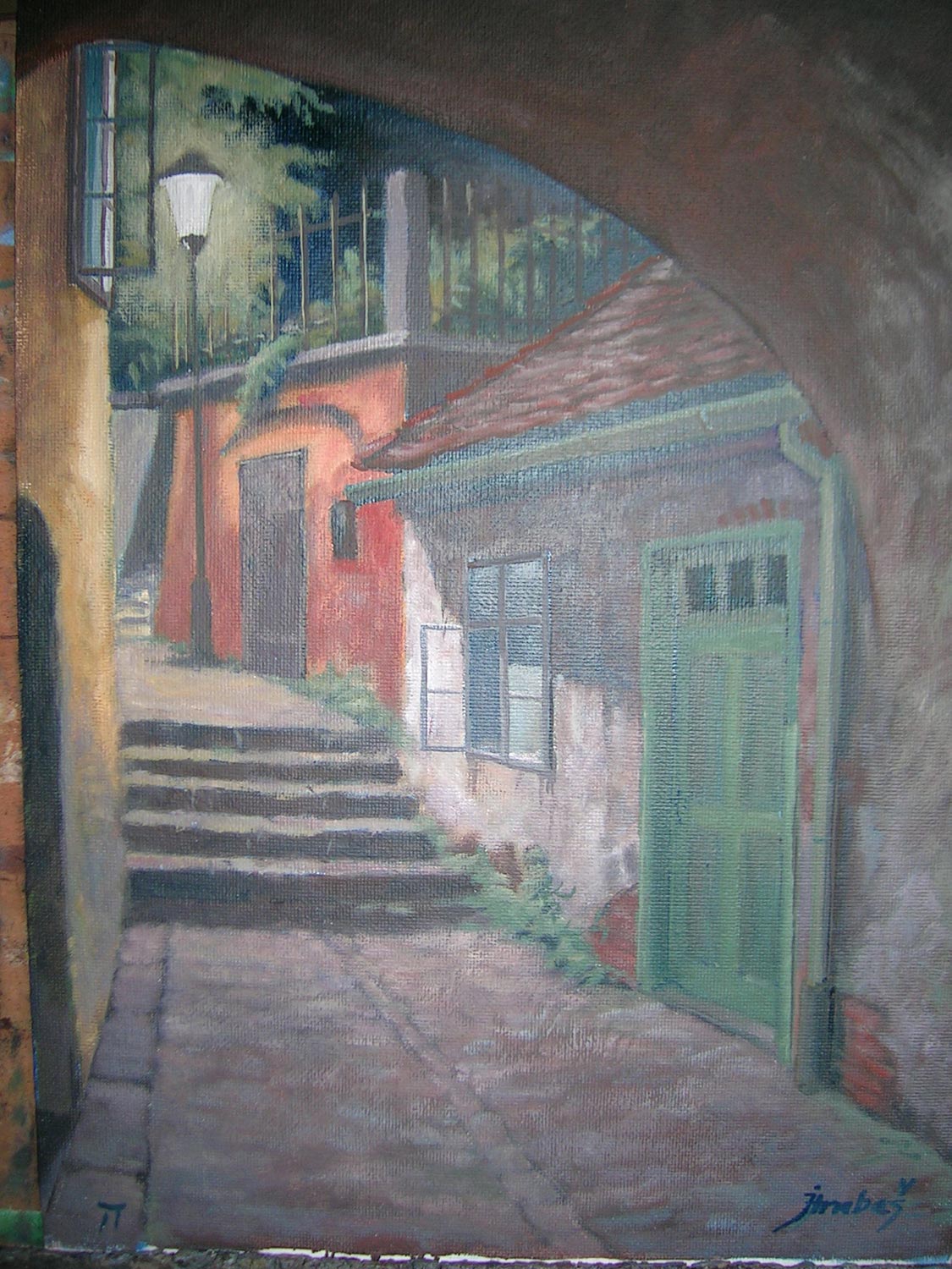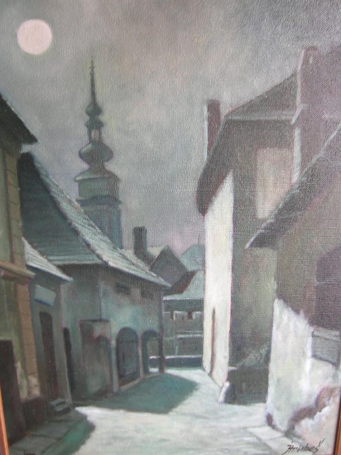 Svými obrazy, naplněnými barevnou laskavostí, vzdává Josef Hrubeš, úctu a hold stejným dílem rodnému městu, jako jeho dnes již nežijícím původním židovským obyvatelům . Jiní pak zvlášť, protože oni byli tím určujícím prvkem, který po staletí vytvářel neopakovatelný, nostalgický půvab židovských čtvrtí a ghett, dnes však již – ke škodě nás všech – mizejících. V tomto prostředí v domě svého otce a děda, Josef Hrubeš žije a tvoří, inspirován kouzlem staletí, vyzařujícího z každého kamene, zákoutí, domu či uličky, stejně jako z malebného prostředí starého židovského hřbitova.